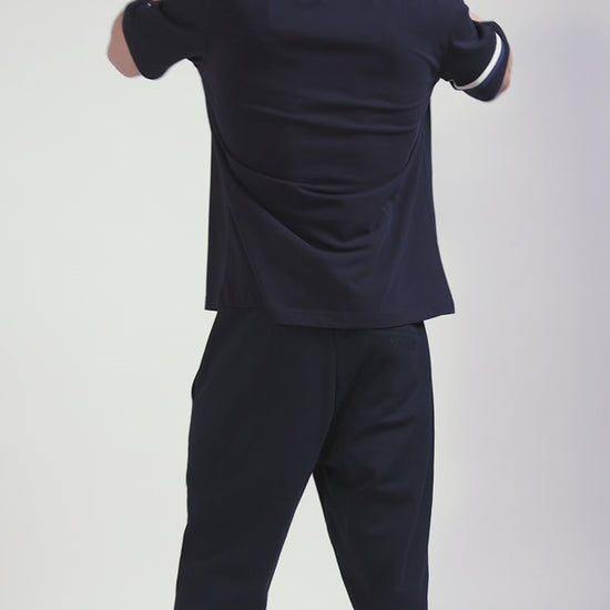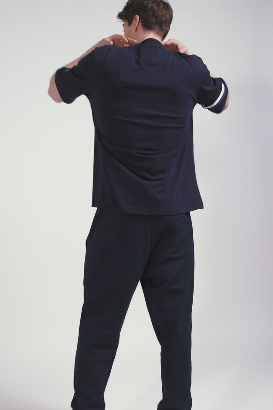 Emblematic of the Eden Park spirit, this comfortable men's cotton jersey T-shirt is screen-printed with the Eden Park name, and features striped knit ribbing on one of its short sleeves. This model is available in gray or navy blue to match your seasonal wardrobe.