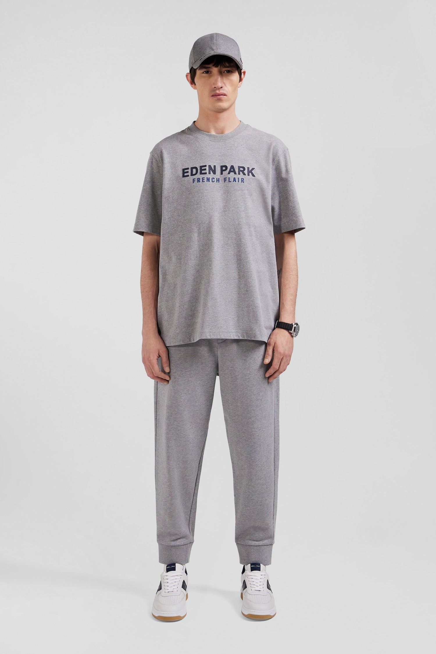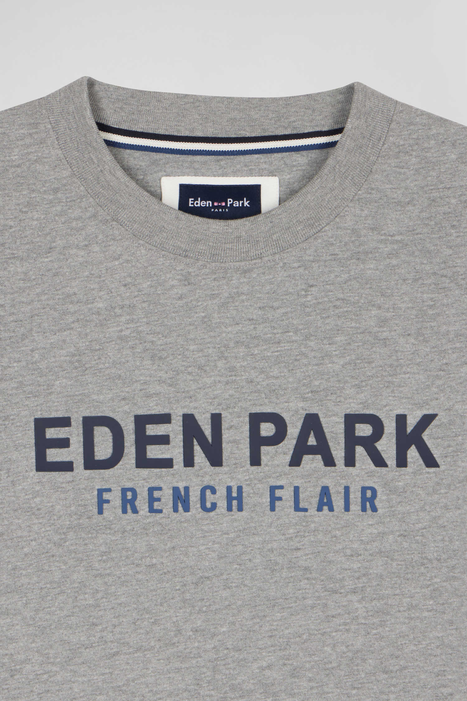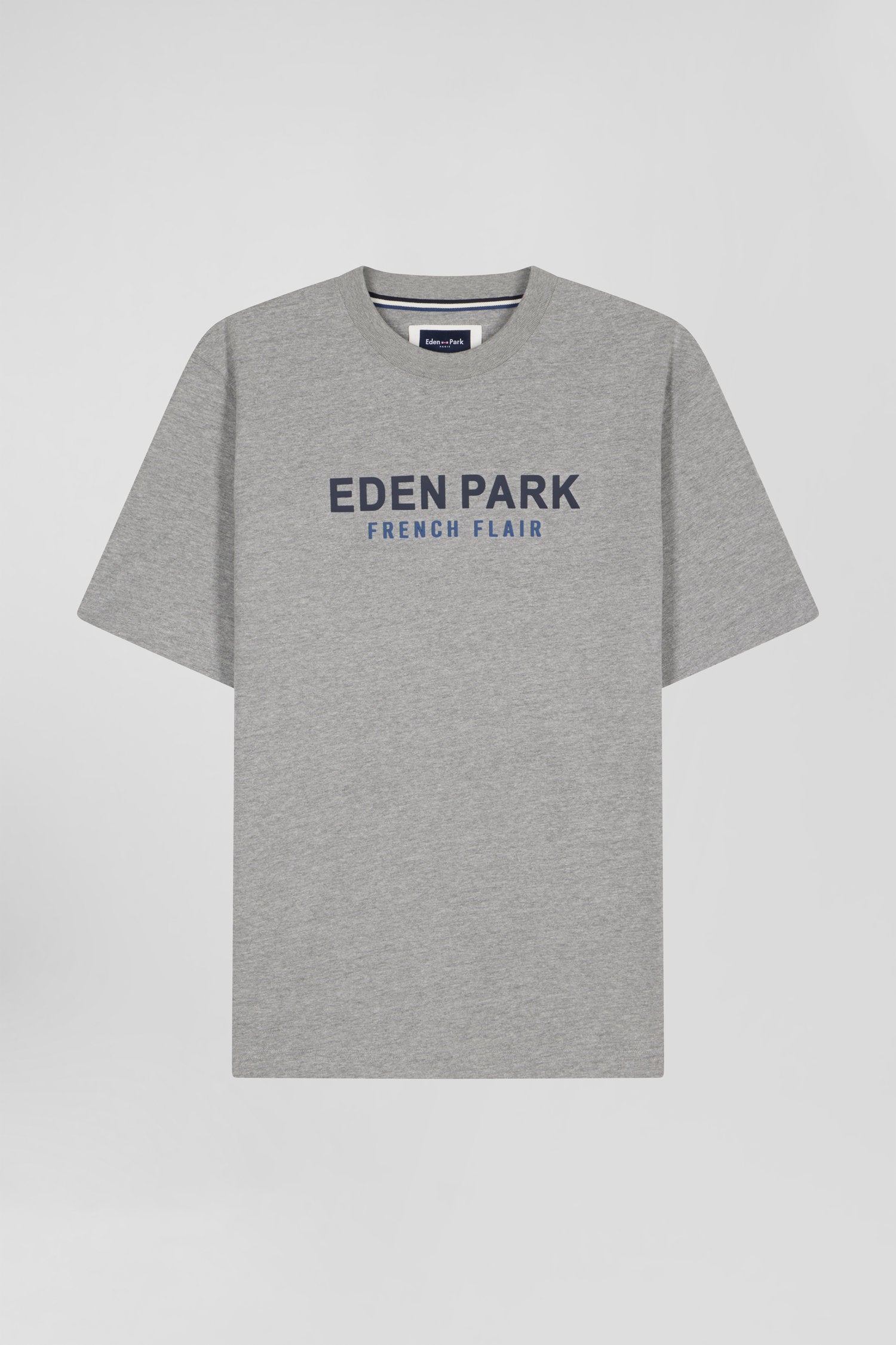 With its loose, comfortable oversized cut, this men's cotton jersey T-shirt will become an essential in your casual wardrobe. Available in gray or ecru, it proudly bears the name of our House and our motto French Flair, echoing the quirky elegance of Eden Park.