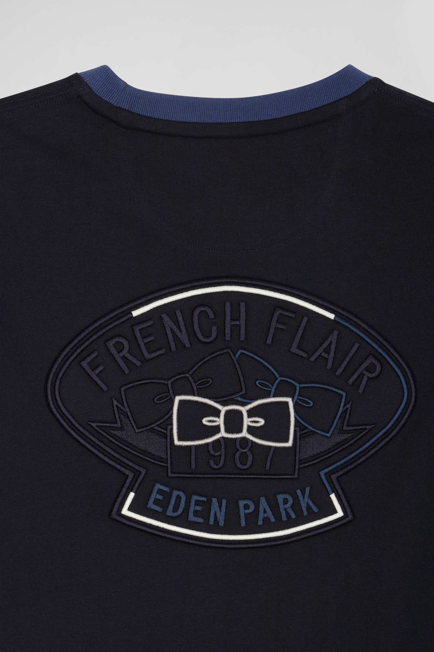 Regular navy blue cotton T-shirt with short contrasting sleeves