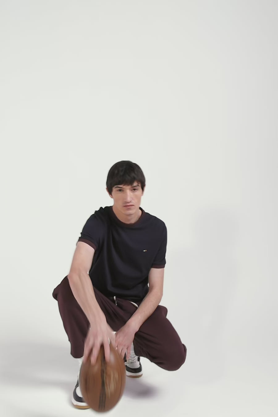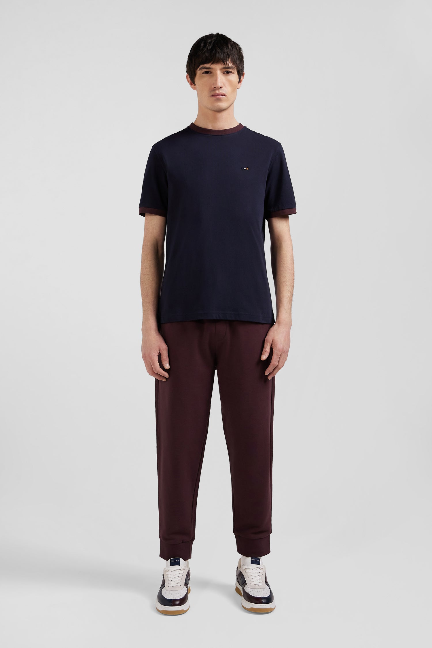 Navy blue and burgundy leather sneakers
