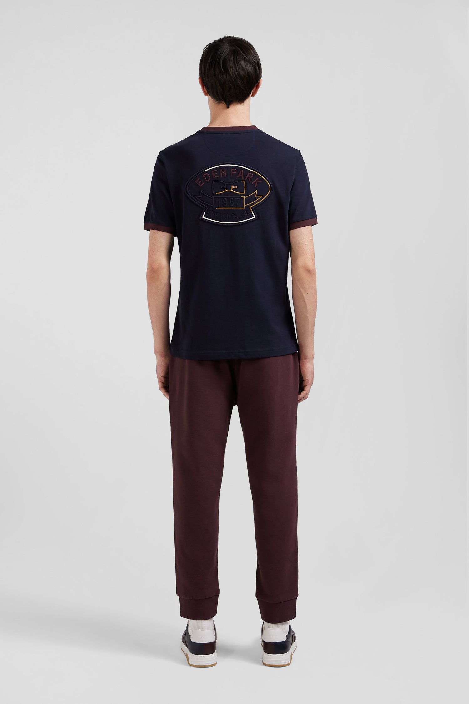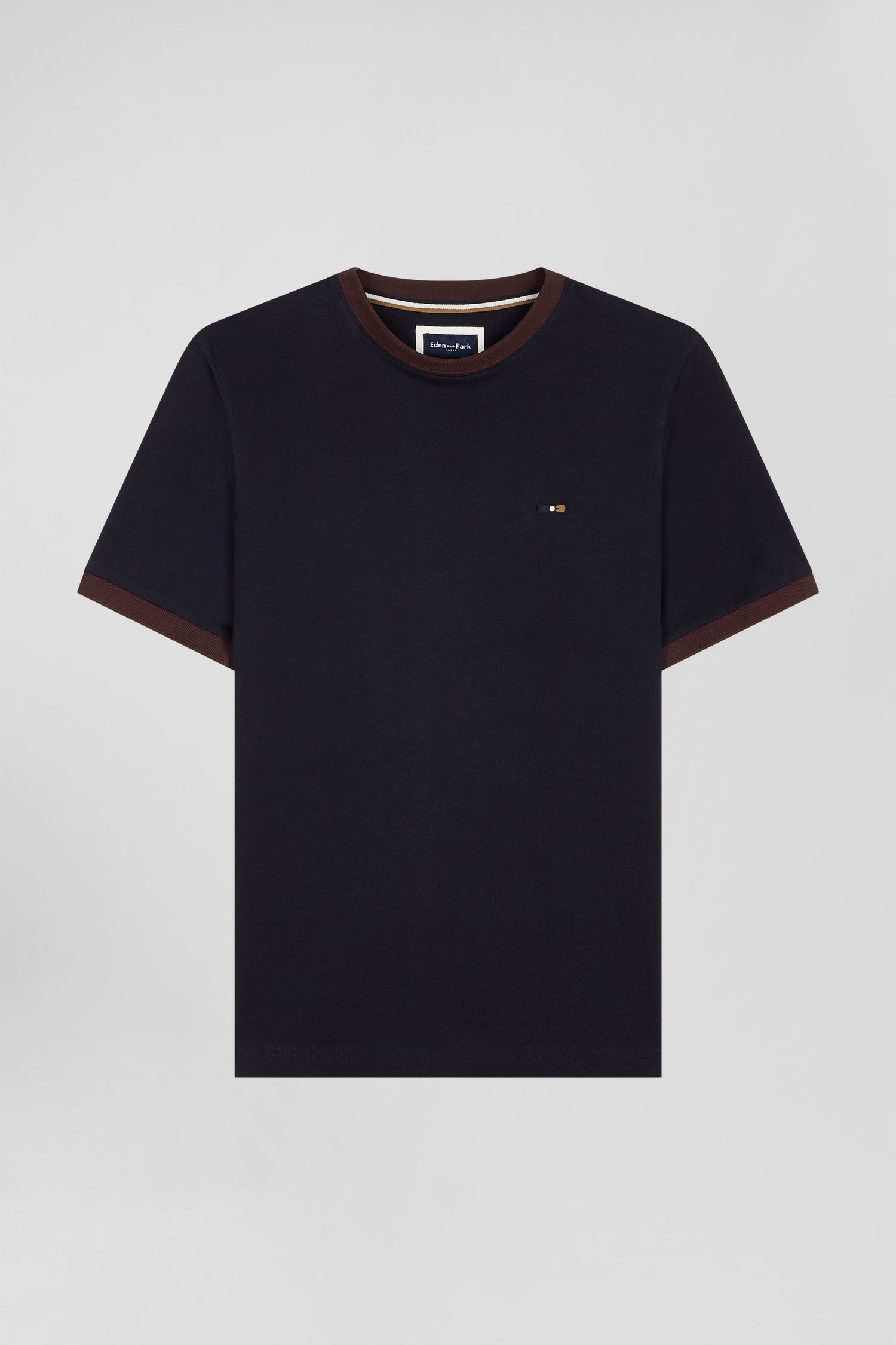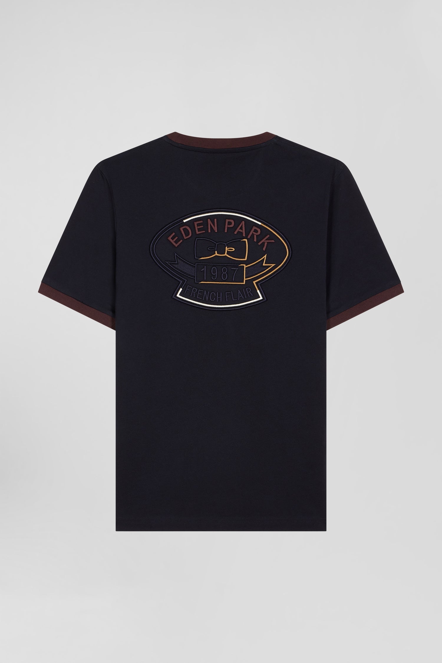 Regular navy short-sleeved cotton T-shirt with back embroidery