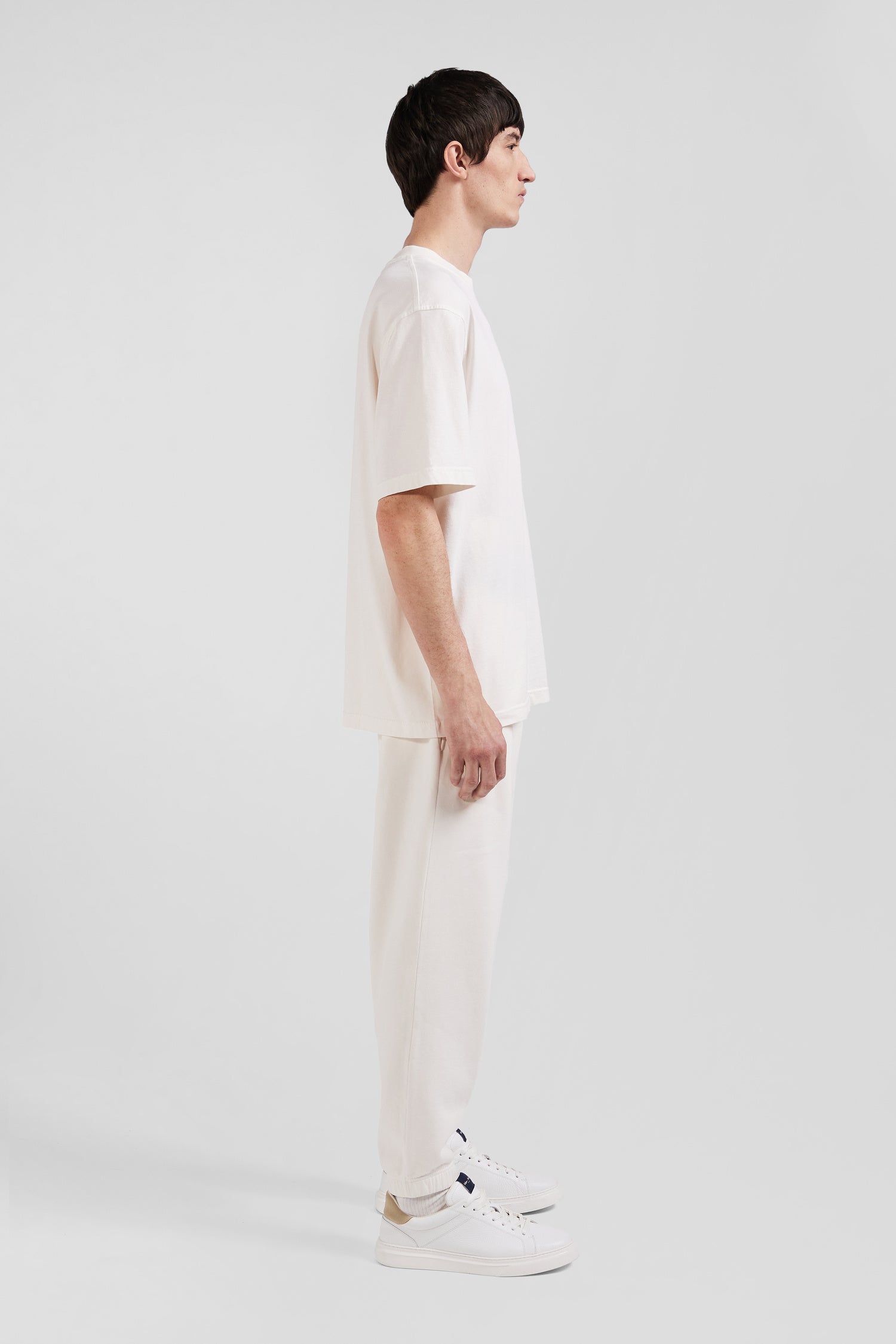 For this range of unisex T-shirts, our House has perfected an over-dyeing process to give a slightly vintage effect to the cotton jersey. Available in pastel colors, this loose-fitting oversized model can be worn in monochrome with matching jogging pants.