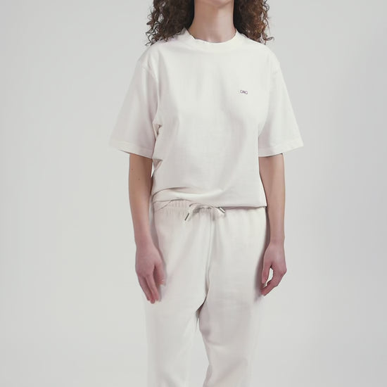 Oversize ecru unisex short-sleeved T-shirt in overdyed cotton
