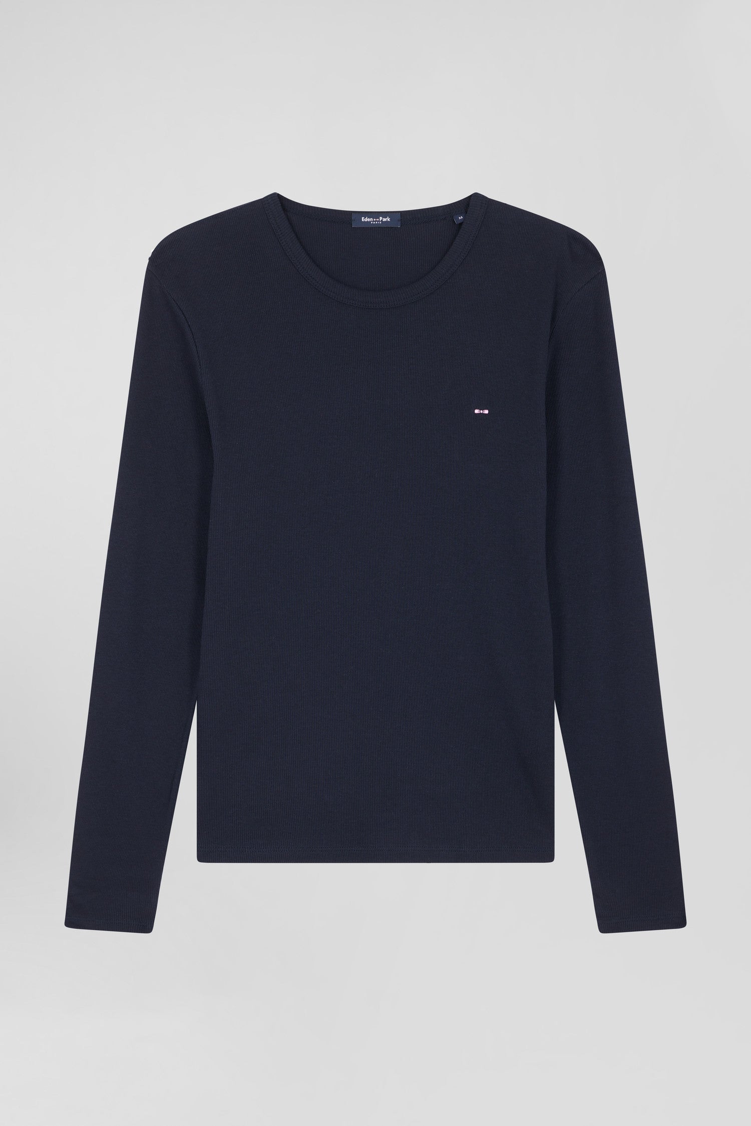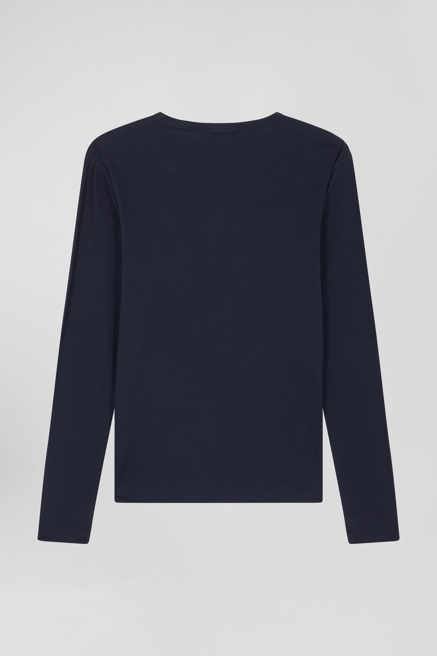 Slim navy blue long-sleeved round neck cotton T-shirt