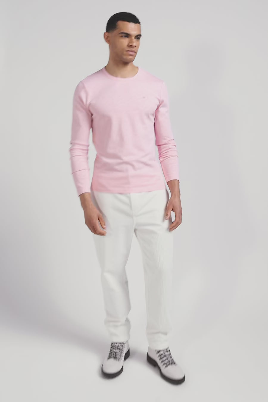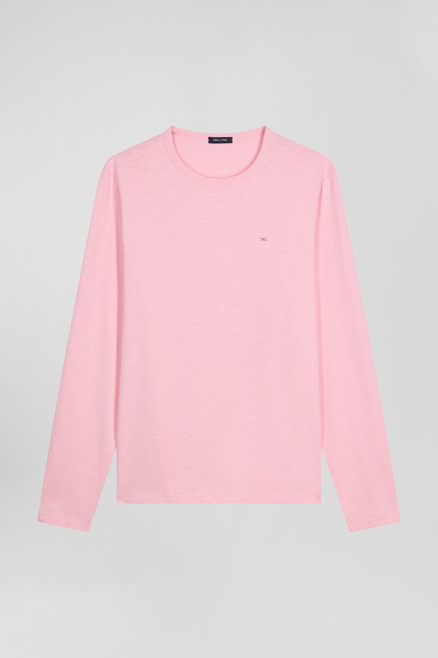 Slim pink long-sleeved cotton T-shirt