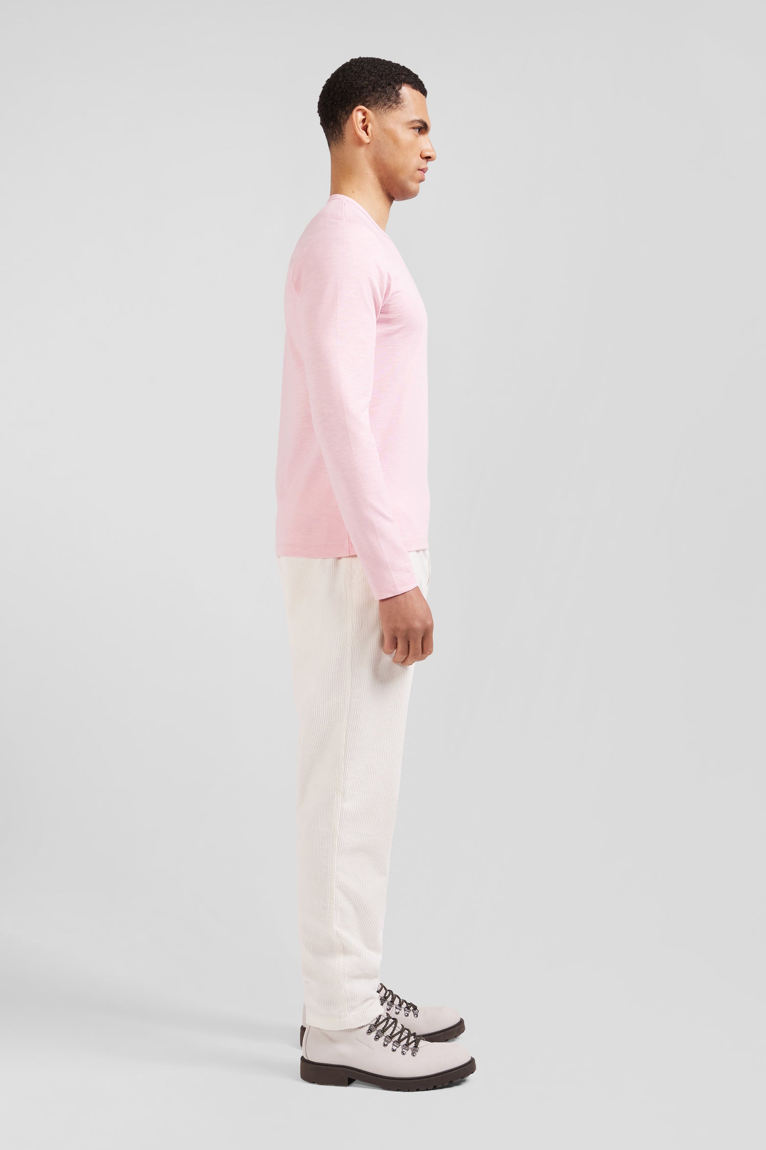 Available in a range of pastel colors or timeless hues, this long-sleeved T-shirt for men will quickly become a mainstay of your mid-season wardrobe. For added comfort, we've selected a soft cotton with a slightly mottled look.